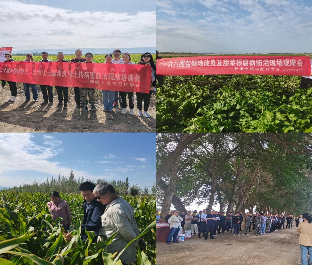 活動首先觀摩了新疆土壤與肥料學會會員企業宏都嘉業生物科技有限公司的改良鹽堿地防治甜菜根腐病150畝甜菜改良劑應用示范基地,該技術使甜菜由6000公斤/畝提高6500公斤/畝以上,該公司總經理、新疆土壤與肥料學會監事路振國研究員長期在一線推廣鹽堿地改良作物抗性技術?;顒舆€觀摩了甜菜高產種植示范、制種玉米種植示范和秋田整地標準示范等三個點位。