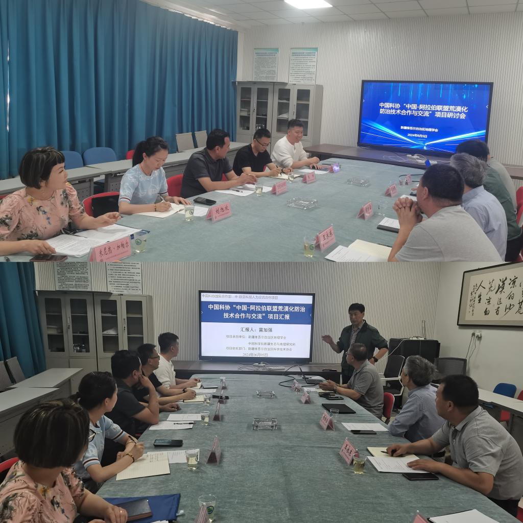 6月5日下午,新疆地理學會召開了中國科協“中國-阿拉伯聯盟荒漠化防治技術合作與交流”項目研討會,理事長雷加強研究員主持研討會。自治區科協學會部部長艾斯克爾?臺外庫力、中科院新疆生地所穆桂金研究員、王永東正高級工程師、國際合作處副處長王猛、新疆大學地理與遙感科學學院院長張峰教授、新疆地理學會秘書長李生宇正高級工程師和中科院新疆生地所學會部主任米尼熱?加帕爾、業務主管李莉參加了會議。