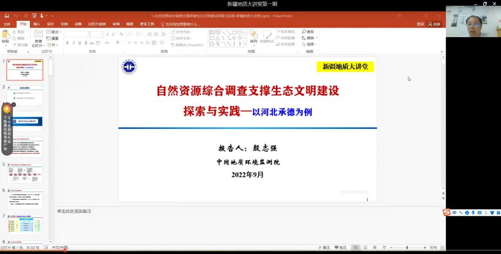 會議邀請中國地質環境監測院自然資源綜合調查室主任殷志強博士作報告,新疆地質學會張冀秘書長主持。