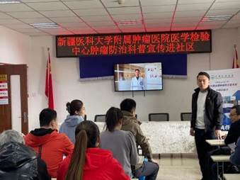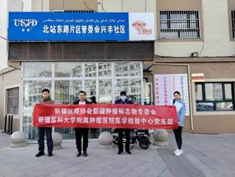 2023年4月19日,新疆微生物學會理事單位新疆醫科大學第三臨床醫學院(附屬腫瘤醫院)醫學檢驗中心書記沙若成帶隊,攜醫學檢驗中心4名黨員同志,前往新疆烏魯木齊北站東路興豐社區等3個社區進行2023年度“CACA指南,我知你知”腫瘤防治宣傳活動。此次活動由醫院醫學檢驗中心主任馬秀敏教授精心籌劃指導,先后通過電子屏幕播放腫瘤防治科普視頻,現場向就診患者及家屬發放腫瘤防治宣傳資料,講解腫瘤防治相關知識,解答患者及家屬疑問。期間,沙若成書記和馮陽春同志采用通俗易懂的語言,教導大家要養成健康科學的生活飲食習慣,建議大家提高疾病早發現、早診斷、早治療的意識,為群眾上了一堂生動的健康課,得到社區干部和群眾的一致好評。