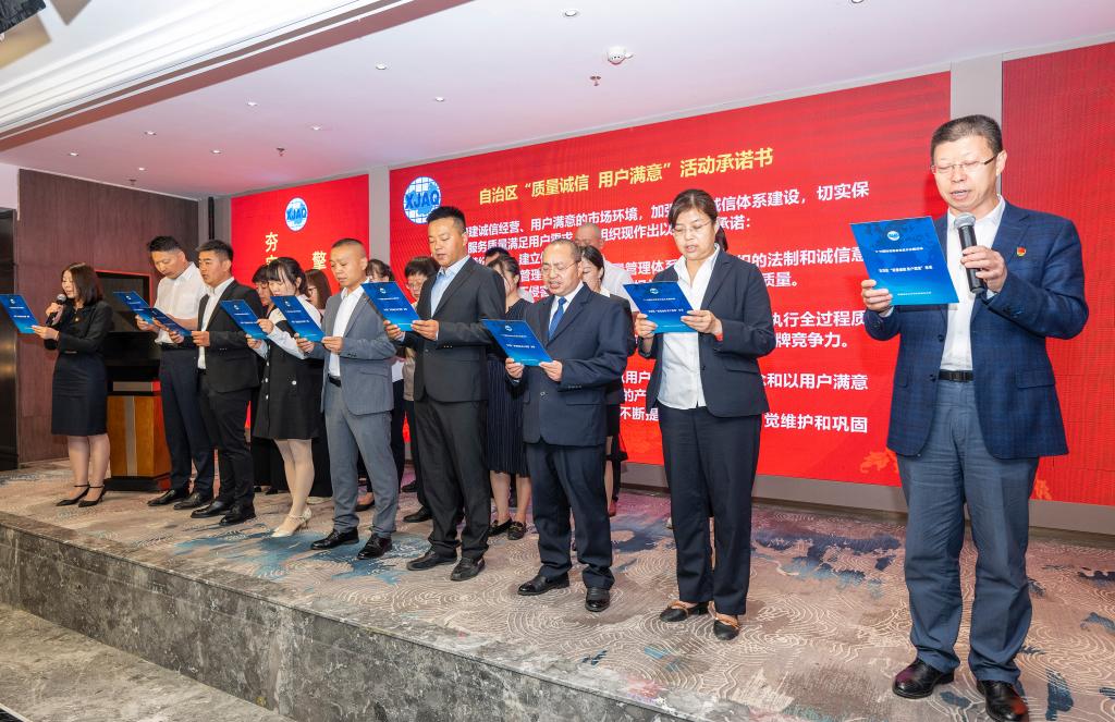 最后,自治區“八大產業集群”單位代表及第八屆理事代表、質量專家、優秀質量工作者共同宣讀了“質量誠信、用戶滿意”承諾書。協會有關領導為質量誠信承諾企業代表頒發了發紀念牌匾。