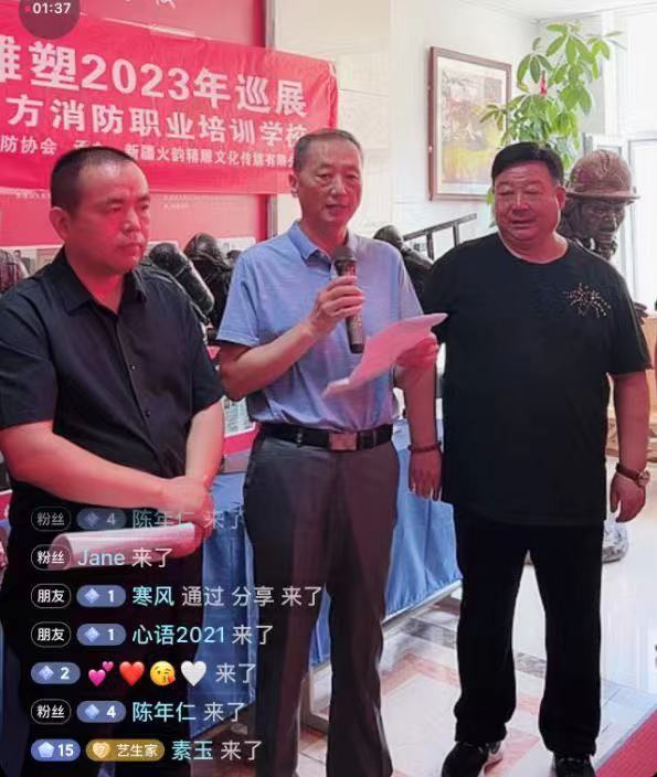新疆火韻精雕文化傳媒有限公司董事長張運介紹了火韻文創消防雕塑2023巡展情況和精美雕塑創作歷程,向大家展示了具有消防滅火救援場景和指戰員光輝形象等消防元素的精雕文化作品,并表示將發揮一名消防老兵余熱,為新時代新疆消防科普事業做出更大貢獻。新疆清大東方消防職業培訓學校校長張浩作為在部隊長期與張運共事的戰友,介紹了多年來張運堅持利用在美術、攝影、精雕等方面的特長創作消防文化作品的歷程。