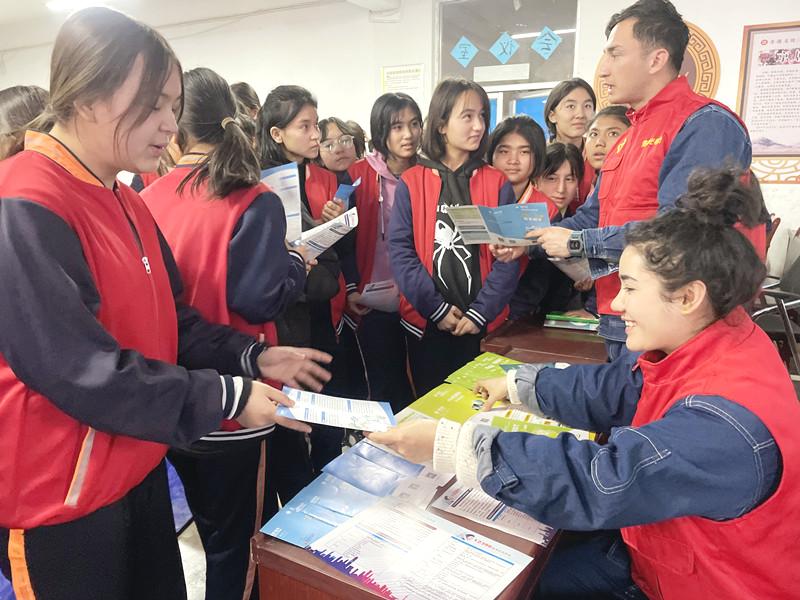 3月4日,新疆和田電力科技工作者、青年志愿者服務(wù)隊為和田市肖爾巴格鄉(xiāng)中學生講解安全用電知識