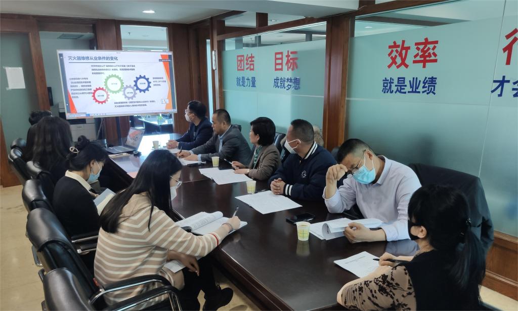 為了加強滅火器維修技術機構和操作人員行業自律管理,進一步規范滅火器維修技術服務行為,維護行業市場秩序,確保服務質量,2023年2月23日,新疆消防協會會同小蜜蜂互聯消防信息技術有限公司,以線上線下形式組織開展了滅火器維修管理系統應用培訓。新疆消防協會黨支部書記、秘書長閆懷宣和秘書處工作人員及部分滅火器維修企業代表在協會辦公室參加了培訓和座談交流。