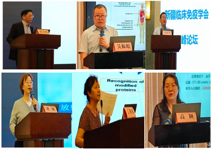 在第一屆新疆臨床免疫高峰論壇上,邀請到中國免疫學會自身免疫分會主任委員、北京大學人民醫院風濕免疫科栗占國教授,中國醫師協會風濕免疫科醫師分會會長、北京協和醫院風濕免疫科曾小峰教授,中華醫學會風濕病學分會主任委員、北京協和醫院風濕免疫科趙巖教授,中國醫師協會風濕病??漆t師分會血管炎學組主任委員、北京協和醫院風濕免疫科田新平教授,歐洲神經肌肉疾病中心委員、中日友好醫院風濕免疫科主任王國春教授,中華醫學會風濕病分會全國常委、西安交通大學第一附屬醫院風濕免疫科主任何嵐教授,北京協和醫院風濕免疫科吳慶軍教授、徐東教授、李菁教授,北京大學人民醫院風濕免疫科劉栩教授、任立敏教授,北京大學第一人民醫院風濕免疫科郝燕捷教授,中日友好醫院風濕免疫科盧昕教授,北京大學第三醫院風濕免疫科穆榮教授,浙江大學醫學院附屬第二醫院風濕免疫科薛靜教授,空軍軍醫大學唐都醫院風濕免疫科吳振彪教授,天津中醫藥大學中西醫結合學院院長邊育紅教授,新疆醫科大學基礎醫學院丁劍冰教授,新疆醫科大學第一附屬醫院呼吸科劉暉教授、綜合內三科高穎教授、神經內科馬建華教授、腎病科張麗教授、內分泌杜國利教授,新疆醫科大學附屬腫瘤醫院檢驗科馮陽春教授等為代表的多位專家,相聚一堂,采用線上線下交流互動的形式,為大家帶來精彩的專題講座。