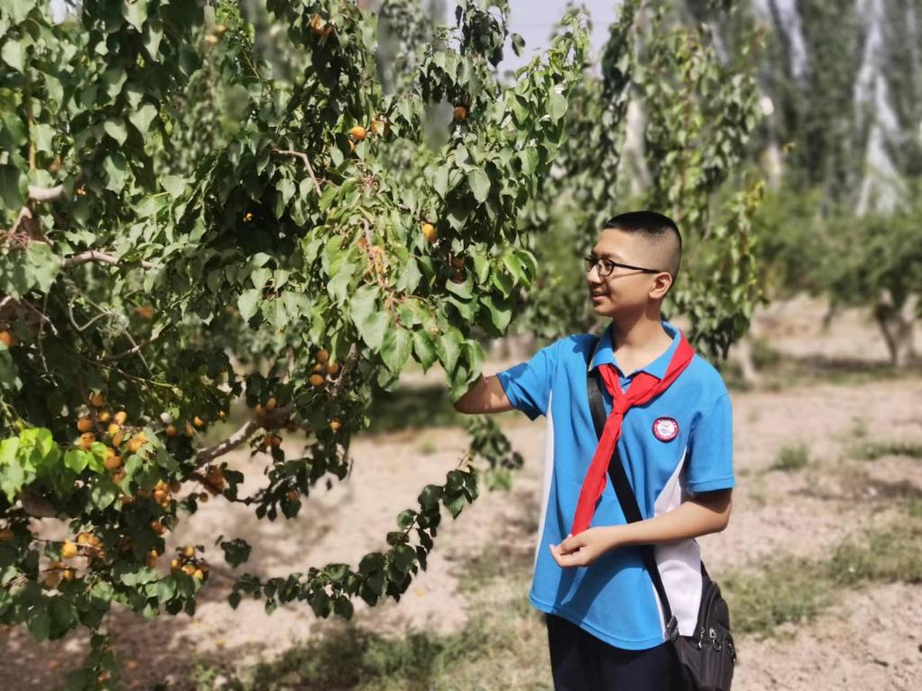 “這是我這段時間以來最幸福的日子,很高興學校與新疆園藝學會組織的這一場有趣的研學活動,我在那里感受到深深的震撼。一片片的果林,碩果累累的果實,在陽光的照耀下散發出光芒,同時我也品嘗了那里美味的果實,不僅顏色好看,而且味道很好,我很喜歡,同時我也明白了輪臺縣會被稱為白杏之鄉的原因,我為我的家鄉感到驕傲。“七(2)班艾合拉木·吐爾遜同學說道。