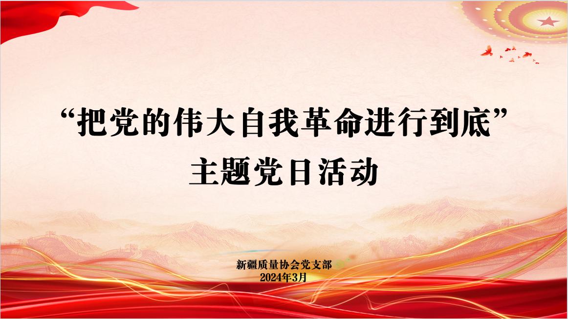3月27日,新疆質量協會黨支部組織黨員、入黨積極分子及職工群眾開展了“把黨的偉大自我革命進行到底”主題黨日活動。