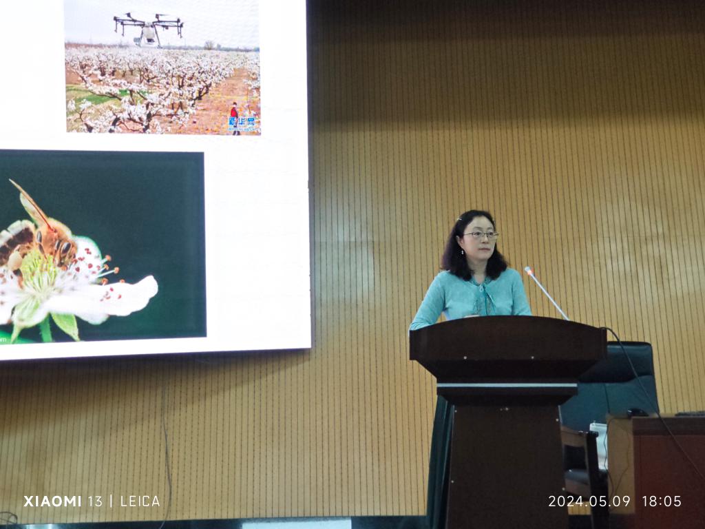 胡教授從什么是傳粉昆蟲、傳粉昆蟲的主要類群、蜜蜂適應于傳粉的形態(tài)學和生物學特性,以及傳粉昆蟲的保護利用等四個方面進行了深入講解和分享。在討論環(huán)節(jié)中,胡教授還介紹了蜜蜂與食蚜蠅的區(qū)別,探討了無人機傳粉是否可替代傳粉昆蟲等熱點話題,引發(fā)了與會學生們的積極討論和思考。