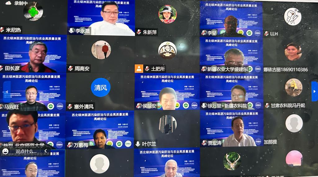 通過研討,明確干旱區綠洲面源污染防治方面的成績和不足,并提出未來高質量發展背景下綠洲面源污染防治的科學問題與戰略需求,為新疆面源污染防治領域的發展提供思路。來自全國各地的300名專家通過云端展開學術討論,共享論壇盛宴。