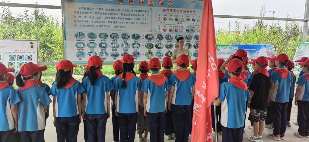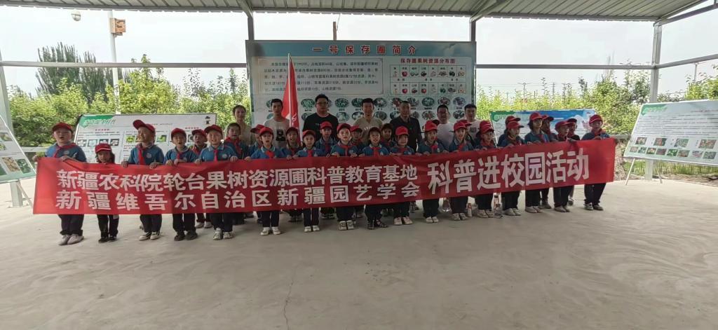 為深入貫徹落實(shí)的二十大精神,持續(xù)踐行“文化潤(rùn)疆”工程。2023年6月16日,新疆園藝學(xué)會(huì)聯(lián)合新疆農(nóng)業(yè)科學(xué)院輪臺(tái)果樹資源圃(國(guó)家園藝種質(zhì)新疆名特果樹及砧木分庫(kù))、輪臺(tái)縣第三小學(xué),在新疆農(nóng)業(yè)科學(xué)院輪臺(tái)果樹資源圃科普教育基地共同舉行了科普進(jìn)校園活動(dòng),共計(jì)30余名工作人員、老師和學(xué)生參加了此次活動(dòng)。