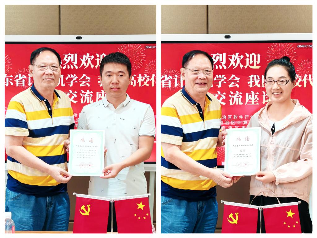 廣東省計算機學會副理事長兼秘書長黃軒對新疆計算機學會的熱情接待和精心安排表示感謝,介紹了廣東省計算機學會組織架構、黨建活動、技能評價、論文評選、學術交流、學科競賽、國際交流、特色活動等工作的開展情況。并著重介紹了“海峽兩岸暨港澳地區大學生計算機創新作品賽”的賽史,分享了辦賽經驗。此外,黃軒代表大賽組委會為新疆計算機學會和新疆農業職業技術學院對總決賽的支持表示感謝并頒發感謝證書。