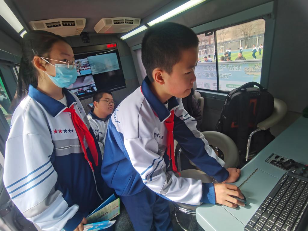 室外科普展覽活動精彩紛呈,同學們觀看了球幕影院里的科學電影、用VR設備體驗了人工影響天氣作業流程和模擬氣象災害,聽志愿者講解了氣象知識,還近距離接觸了人影作業火箭車、氣象電視直播車、氣象衛星模型、便攜式自動氣象站等設備展品。講解和體驗結合的方式,讓同學們了解氣象,讓氣象知識和防災減災知識深入人心。