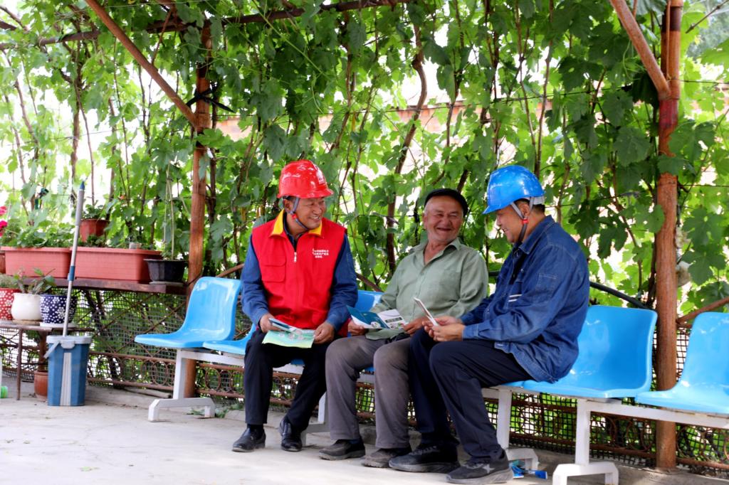 6月13日,學會會員單位昌吉供電公司電力科技工作者向村民哈斯木·哈哈爾講解用電安全常識
