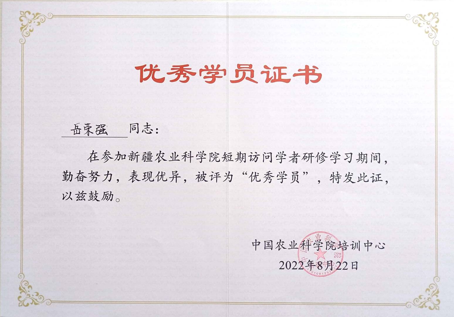 副編審岳榮強7月4日-8月22日在中國農(nóng)業(yè)科學院參加第四次新疆農(nóng)科院訪問學者學習班,對接中國農(nóng)科院信息研究所《智慧農(nóng)業(yè)(中英文)》編輯部,在訪學期間,系統(tǒng)學習了期刊內(nèi)容新媒體傳播技術(shù),并參與執(zhí)行中科院自然科學期刊研究會項目“融媒體建設(shè)與傳播策略”,對入選2019年卓越期刊中運營多種新媒體期刊作為樣本,對期刊類型、作者群體、新媒體發(fā)表內(nèi)容、閱讀情況等進行統(tǒng)計分析,探究不同平臺內(nèi)容傳播規(guī)律。8月22日圓滿完成學習任務(wù),取得“中國農(nóng)業(yè)科學院國家級專業(yè)技術(shù)人員繼續(xù)教育基地培訓證書”,并被評為“優(yōu)秀學員”。