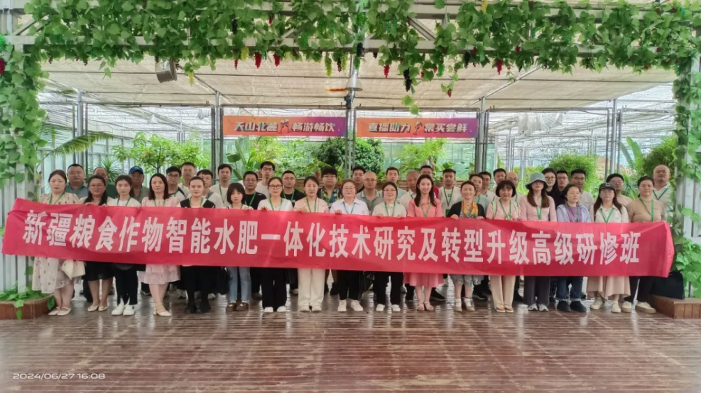 6月27日-7月1日,新疆土壤與肥料學會理事長、中國科學院新疆生地所田長彥研究員與新疆土壤與肥料學會理事、慧爾農業集團黨總支書記馬文新高級經濟師在昌吉國家農高區參加了由自治區人社廳主辦,昌吉州人社局協辦,新疆土壤與肥料學會副理事長單位新疆慧爾農業集團股份有限公司承辦的自治區“新疆糧食作物智能水肥一體化技術研究及轉型升級”高級研修班。昌吉州人社局黨組副書記、局長楊邵銀,中國農業大學左元梅教授和來自全疆各地州市的50名農技專家、農業龍頭企業代表、科研院校代表、農業從業人員齊聚一堂,針對研修內容開展學習交流。