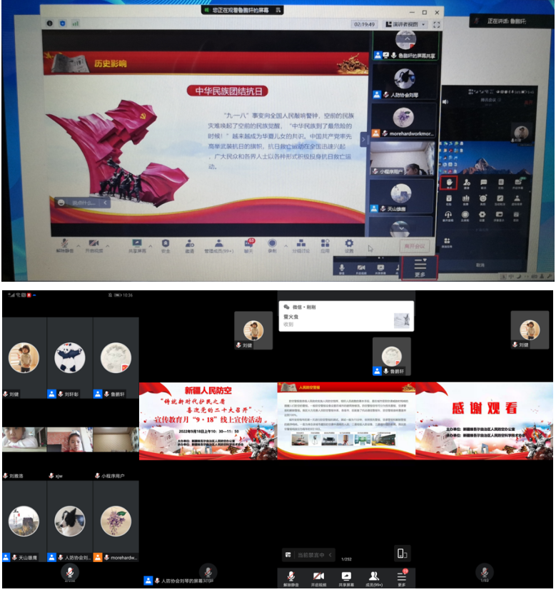 新疆人防科技協(xié)會作為本次活動(dòng)的承辦單位,在人防辦、科協(xié)的指導(dǎo)下,緊緊圍繞“喜迎二十大科普向未來”這個(gè)主題,在烏魯木齊市靜態(tài)管理期間,精心策劃,周密安排,精心組織,積極籌備,按期推進(jìn),嚴(yán)格審查,確保效果。此次全國科普日暨“9·18”警報(bào)試鳴日活動(dòng)依托騰訊會議系統(tǒng)開展線上直播活動(dòng)?;顒?dòng)開始,通過播放人防科教宣傳片,組織自治區(qū)首席人防科學(xué)傳播專家魯鵬軒開展人防知識精彩講座及互動(dòng),并設(shè)置有獎(jiǎng)問答環(huán)節(jié),進(jìn)行線上有獎(jiǎng)競答,將活動(dòng)推向高潮,答題正確的10名同志均獲得了精美紀(jì)念品。播放新疆藍(lán)天救援隊(duì)隊(duì)員開展的心肺復(fù)蘇搶救、急救包扎等防災(zāi)減災(zāi)技能演示體驗(yàn)視頻,網(wǎng)友紛紛留言稱贊。