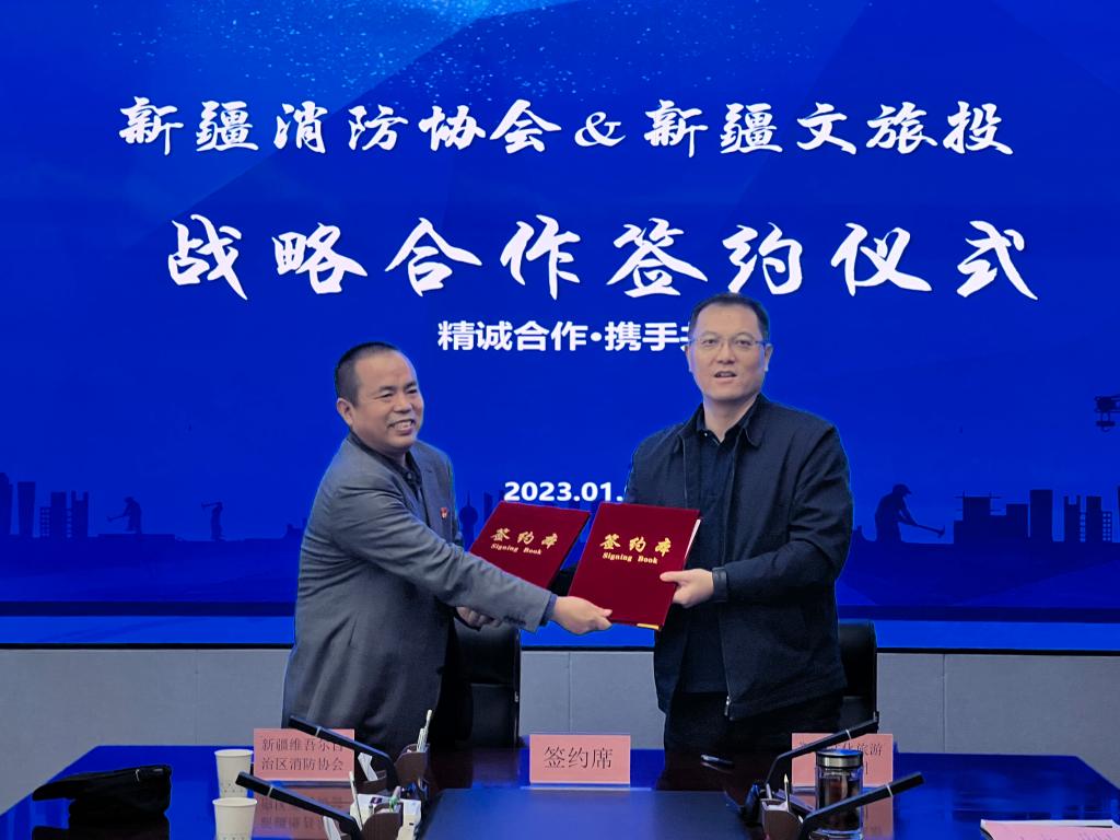 新疆消防協(xié)會黨支部書記、秘書長閆懷宣和新疆文化旅游投資集團有限公司副總經(jīng)理、安全總監(jiān)房磊分別代表雙方簽訂《合作框架協(xié)議》。《協(xié)議》約定,雙方將秉持“友好協(xié)商、優(yōu)勢互補、資源共享、共同發(fā)展”的原則,充分發(fā)揮各自優(yōu)勢,在文旅項目開發(fā)建設(shè)、賓館酒店運營、景區(qū)景點安全管理等領(lǐng)域,開展深層次全方位技術(shù)合作。雙方將通過開展消防科普大講堂、消防技術(shù)咨詢服務(wù)、消防安全管理員培訓(xùn)鑒定、消防安全評估、消防安全隱患排查整治以及共同調(diào)研考察等一系列措施,深化合作成果,提升新疆文化旅游投資集團有限公司全體干部職工火災(zāi)預(yù)防和應(yīng)急處置能力,推動新疆文化旅游事業(yè)向高質(zhì)量發(fā)展。雙方表示將在習(xí)近平新時代中國特色社會主義思想的指導(dǎo)下,深入學(xué)習(xí)貫徹落實黨的二十大精神,聚焦新疆工作總目標(biāo),完整、準(zhǔn)確、全面貫徹新發(fā)展理念,統(tǒng)籌發(fā)展和安全,始終堅持“人民至上、生命至上”,科學(xué)防范化解安全風(fēng)險,筑牢安全發(fā)展“防火墻”,攜手并進,共創(chuàng)美好未來,為建設(shè)美好新疆做出積極貢獻。
