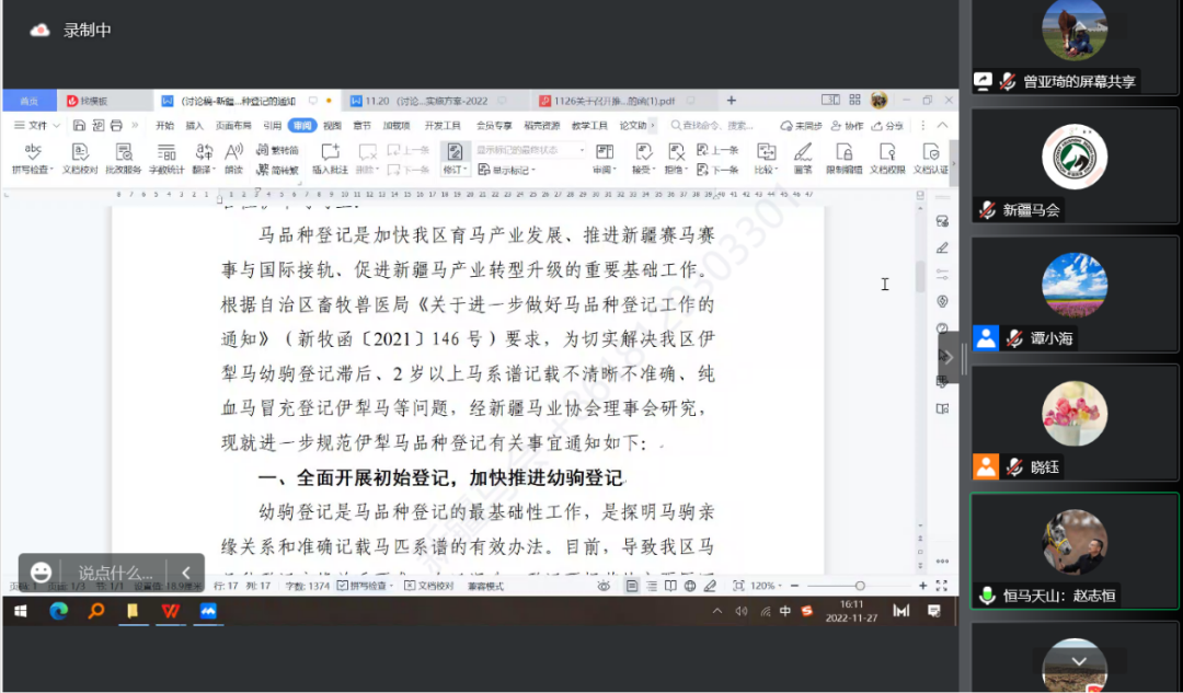 2022年11月27日下午,為切實做好品種登記基礎工作,加快推進品種登記進程,自治區畜牧總站與新疆馬業協會聯合召開推進伊犁馬品種登記工作線上研討會。研討會由自治區畜牧總站書記譚小海主持。自治區畜牧獸醫局畜牧處、伊犁州畜牧總站、伊犁州馬業協會、昭蘇縣畜牧中心與重點馬業企業等有關領導、技術人員、養馬大戶50余人參加此次研討會。