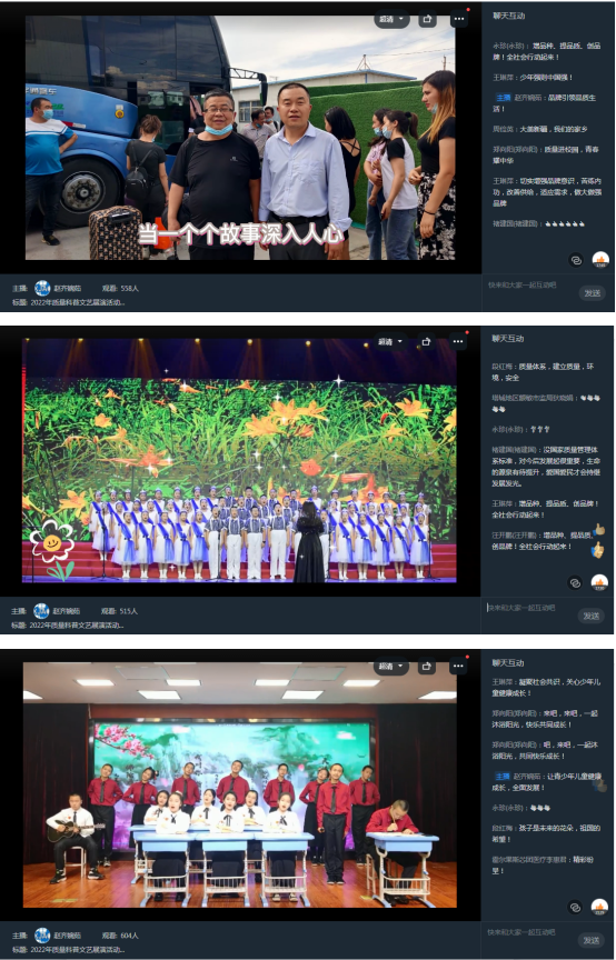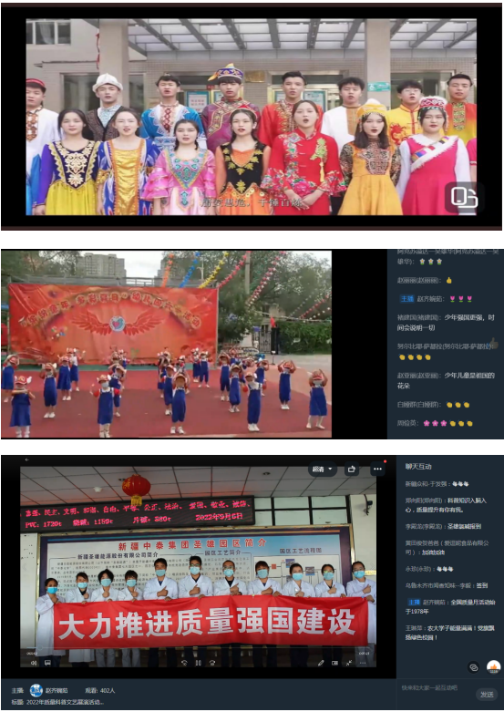 參展節目由新疆農業大學、新疆輕工職業技術學院、哈密第十三師職業技術學院、烏市第23幼兒園、新疆圣雄氯堿公司、新疆油田公司、新疆信息產業公司、和中慧達文化傳媒公司等10個組織選送,展演作品包含活潑可愛的少兒舞蹈、節奏鮮明的中學生聲律、激情昂揚的大學生朗誦、忠誠奉獻的質量人心聲。活動過程中主持人積極引導大家認識和掌握質量新知識、科學新理念,與線上觀眾充分互動,起到了寓教于樂、普及科學的效果。同步組織的有獎知識競答活動得到了大家的廣泛參與,展演活動共計828人參與。