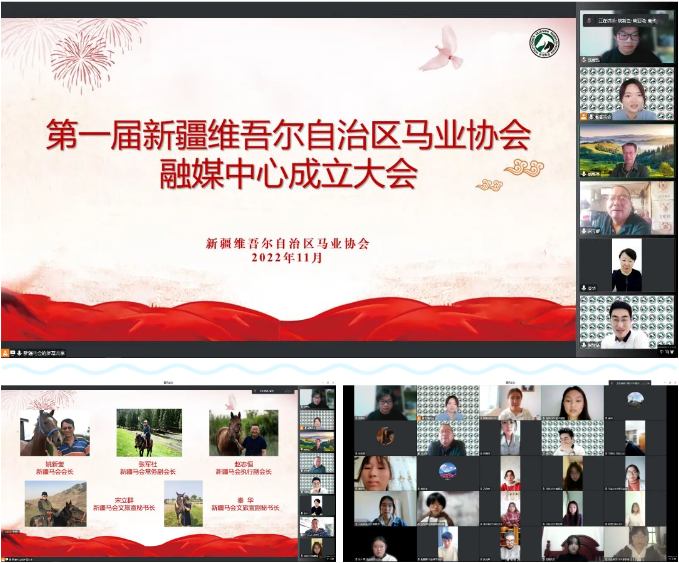 為更好地宣傳推廣新疆馬產業,充分展示全區與馬相關的故事文化,推介馬科研成果與產品,2022年11月6日,新疆馬業協會以中國記者節為契機,在線召開第一屆新疆馬會融媒中心成立大會,協會會長姚新奎、常務副會長張軍社、執行副會長趙志恒及第一屆新疆馬會融媒中心全體成員參加此次會議。