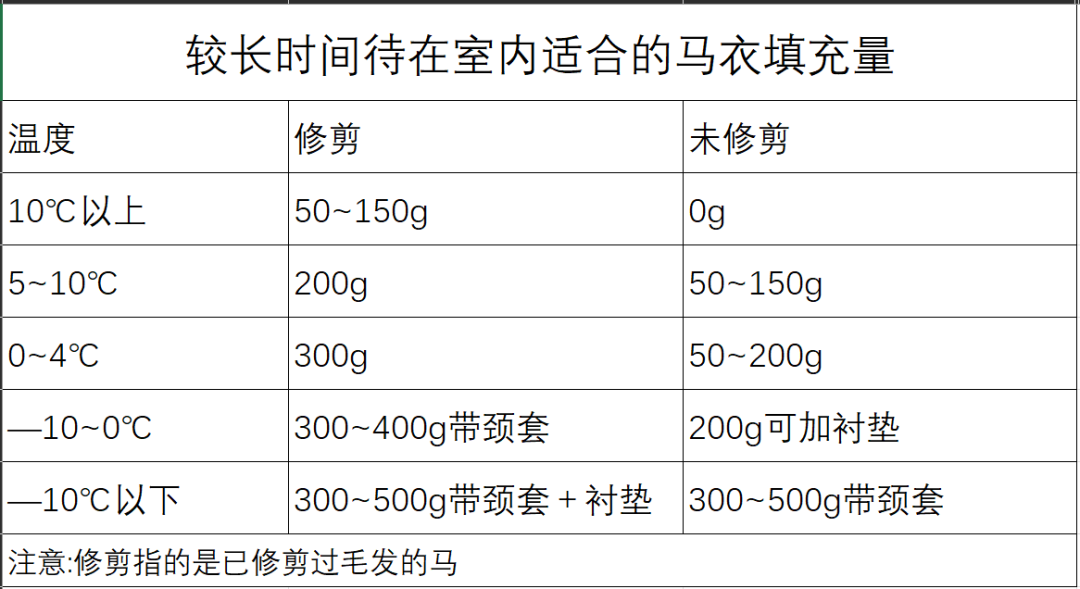 下附不同溫度適合的馬衣填充量,趕快收藏起來吧!