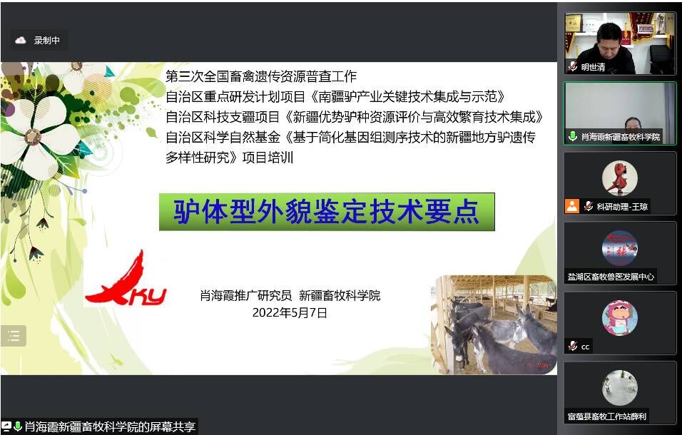 為做好第三次全國畜禽遺傳資源普查工作,不斷提高驢生產(chǎn)性能的測定水平,5月7日上午,新疆畜牧獸醫(yī)學(xué)會舉辦了以“馬、驢外貌鑒定”為主題的第9期線上技術(shù)培訓(xùn)會。