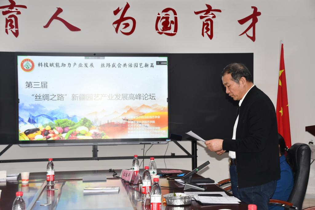 2023年3月19日,由新疆園藝學會主辦,新疆農業大學園藝學院、石河子大學農學院、塔里木大學園藝與林學學院、新疆農業科學院園藝作物研究所、新疆林業科學院經濟林研究所共同協辦的“科技賦能助力產業發展,絲路盛會共話園藝新篇”第三屆“絲綢之路”新疆園藝產業發展高峰論壇在新疆農業大學召開,來自全疆各高校、地州科研院所和生產企業的260余名專家、學者和基層專業技術人員代表通過線上、線下的形式參加了本次會議。