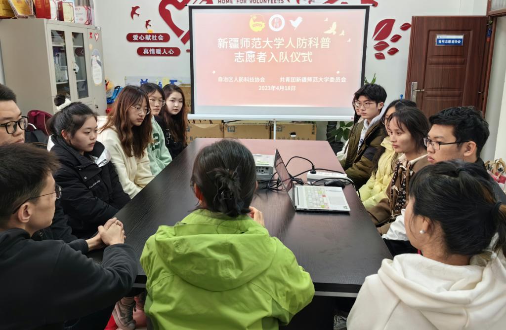 為充分發揮新疆人防科技協會開放型、樞紐型、平臺型組織優勢,普及國防人防科學知識,傳播國防人防科學思想,弘揚人防建設重要性,結合中國科協《關于組織實施進一步做好科技志愿服務有關工作的通知》及自治區科協相關要求。4月18日,新疆人防科技協會秘書處一行來到新疆師范大學開展國防人防科普志愿者師范大學分隊成立儀式。新疆師范大學校團委副書記王俊淇、校團委辦公室主任汪艷霞以及10名學生志愿者參加了國防人防科普志愿者新疆師范大學分隊成立儀式活動。