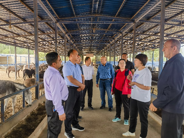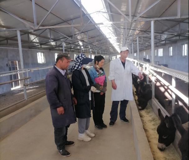 5月15日,托乎提·阿及德研究員、肖海霞研究員會同喀什澤普縣的新疆金胡楊藥業有限公司張建玲董事長、新疆金胡楊牧業有限公司宋智輝總經理趕赴和田墨玉縣,對前期調研交流過的墨玉縣托格拉亞畜牧養殖農民專業合作社進行回訪、洽談合作,當地鄉黨委書記王天喜,村第一書記趙余山,村黨支部書記、副鎮長吾布力·玉努斯,合作社負責人非常重視。在對合作社驢養殖場進行全面考察后,與會人員就該合作社原料輸出、提高養殖戶養殖效益、新疆特色驢產業生產模式等問題進行了溝通交流與探討。張建玲董事長現場表示,希望能與合作社形成產業聯盟,由合作社供應其企業驢產品加工原料,共建“企業+合作社+農戶”模式,共同促進農企增收增效。
