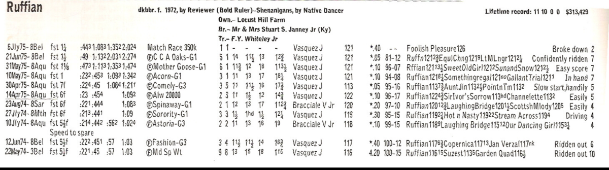 1972年,一只深褐色的小母馬出生在美國肯塔基州的克萊伯恩農場,馬主卻給它起了一個男孩子的名字—“暴徒”(Ruffian),因為它身材高大,虎背熊腰,根本不像一匹母馬。后來“暴徒”的賽事生涯,更加證明了馬主的這一判斷。