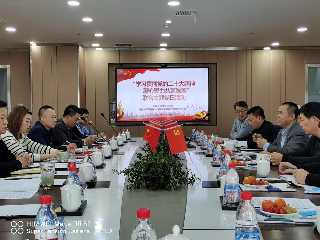 為深入學習宣傳貫徹黨的二十大精神,談體會說感悟話心聲,傾聽企業(yè)訴求,廣泛征求會員意見建議,完整準確全面貫徹新發(fā)展理念,共同謀劃2023年度發(fā)展思路,推進協(xié)會及行業(yè)產(chǎn)業(yè)高質(zhì)量發(fā)展,12月9日下午,新疆消防協(xié)會在會員企業(yè)烏魯木齊天耀偉業(yè)信息技術服務有限公司組織開展“學習貫徹黨的二十大精神凝心聚力共贏發(fā)展”主題黨日活動。活動由新疆消防協(xié)會黨支部書記、秘書長閆懷宣主持,副會長劉生忠和副會長單位代表吳星城,常務理事文毅、楊志遠和常務理事單位代表孫雪鵬,理事胡曉東、曾志平和理事單位代表趙培焱、邢軍偉及會員企業(yè)烏魯木齊天耀偉業(yè)信息技術服務有限公司黨員代表參加此次活動。