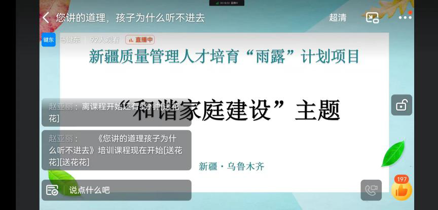 8月29日,新疆質(zhì)量協(xié)會繼續(xù)開展質(zhì)量提升公益講堂系列活動,圍繞“您講的道理,孩子為什么聽不進去?”主題,特邀專家以線上形式開展課程分享。