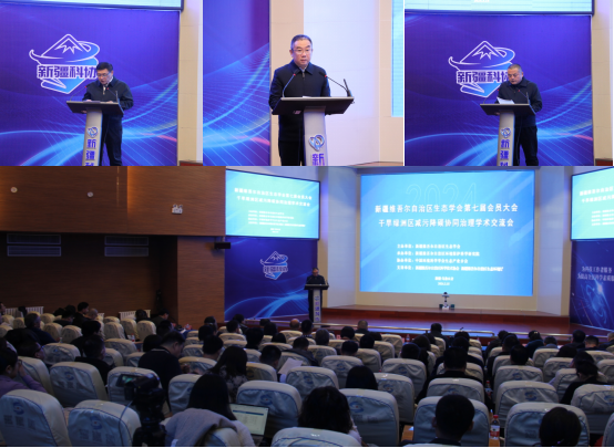 大會同時舉辦了主題為“干旱綠洲區減污降碳協同治理”學術交流會。交流會屬2023年度自治區科協重點資助項目,由自治區生態學會主辦、自治區環科院承辦、中國環境科學學會生態產業分會協辦。主辦和承辦單位圍繞交流會主題,結合自治區生態環境保護重點領域,對主旨報告和專題報告進行了精心設置。中國科學院新疆生態與地理研究所陳亞寧研究員,南開大學環境學院書記馮銀廠教授,中國環境科學研究院首席科學家喬琦研究員,中山大學/新疆大學黃海保教授4位專家學者在會上作了主旨報告。來自新疆高校、科研院所及相關機構的6名專家學者圍繞從大氣污染防治、塔里木本地沙塵天氣傳輸特征、PM2.5二次無機粒子研究、水污染溯源分析、油泥污染特征與環境管理等方面做了專題報告,從理論到應用、從宏觀到微觀,全方面地圍繞減污降碳協同治理進行了深入地探索和交流。