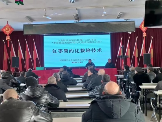 2023年2月8日至15日,新疆林學(xué)會(huì)選派2位林果專家,前往和田地區(qū)墨玉縣、和田市、和田縣、策勒縣舉辦了7場(chǎng)紅棗簡(jiǎn)約化栽培技術(shù)培訓(xùn),累計(jì)培訓(xùn)果農(nóng)和生態(tài)護(hù)林員1000余人。