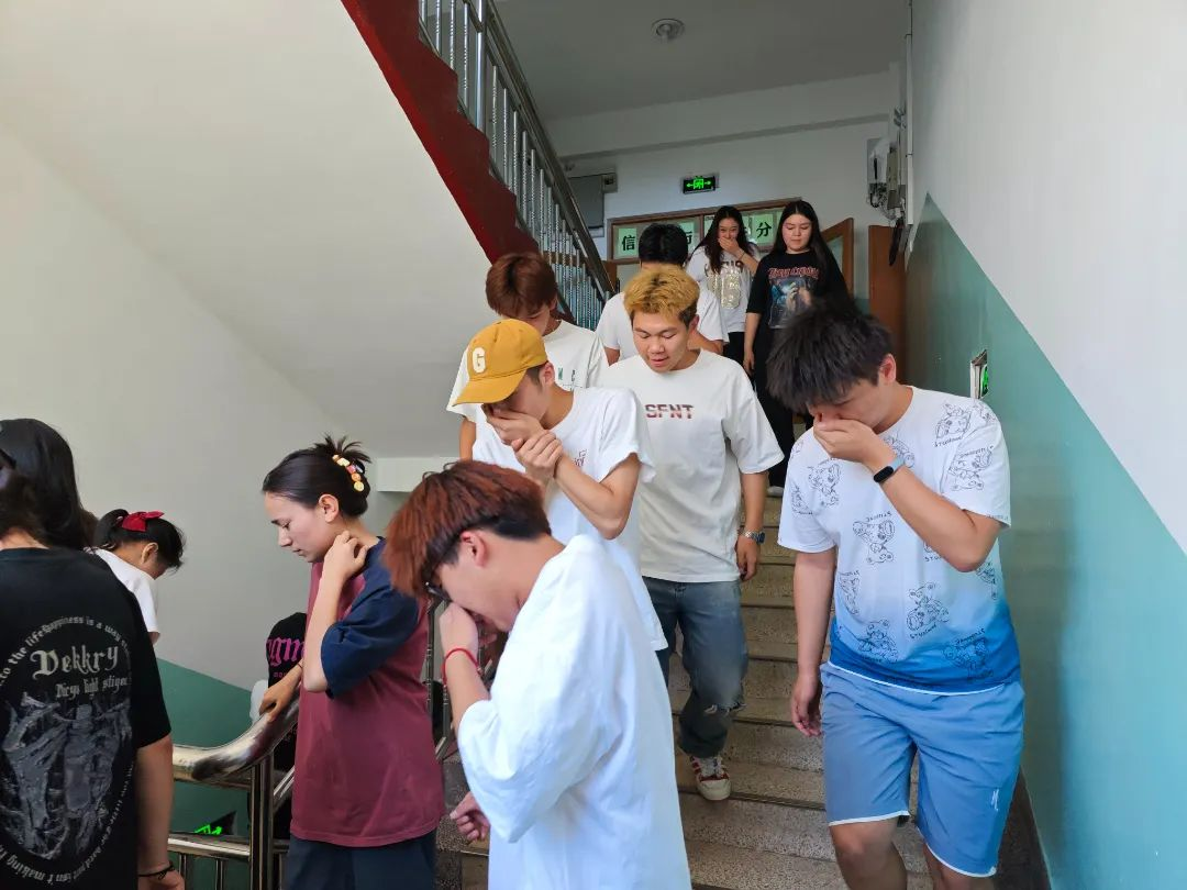 隨著警報聲響起,疏散演練正式開始,三樓教室電線短路引發火災,老師立即組織100余名學生按照預先設定的疏散路線捂住口鼻、低姿彎腰開始疏散,1分48秒所有人員安全疏散到空曠位置。