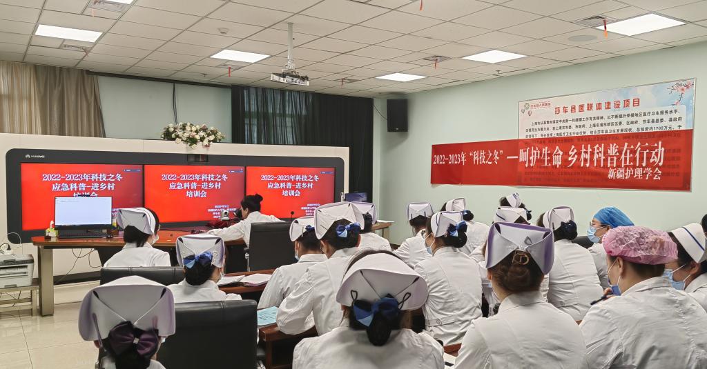 根據自治區科協《關于開展今冬明春“科技之冬”活動的通知》(新科協發[2022]116號)相關安排部署,1月11日下午,新疆護理學會常務副理事長楊益在線上與莎車縣人民醫院舉辦了第一站“健康新疆突發性公共事件基層應急救護培訓項目”啟動會。啟動會由莎車縣人民醫院院長助理、護理部主任李玉芳主持。