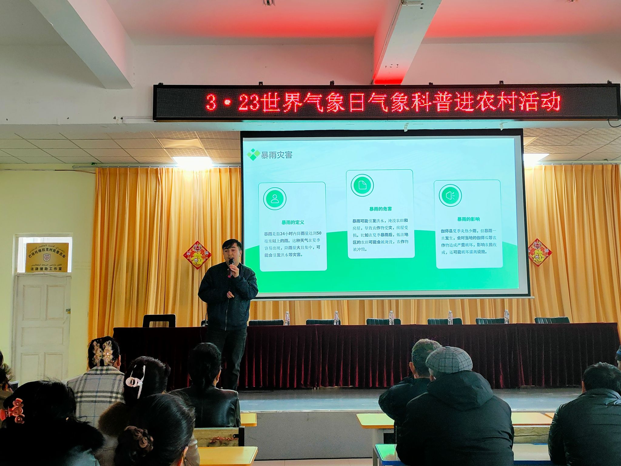 活動結合3·23世界氣象日“攜手縮小早期預警差距”的主題,為當地農民帶來了一場精彩紛呈的科普盛宴。來自新疆氣象信息中心的駐村工作隊員迪力穆拉提·吐爾遜針對當地發生的氣象災害展開科普,介紹了氣象常識和農村防災減災知識,充分提高了村民們的綜合防災減災能力。