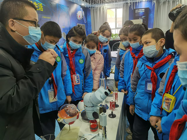輪臺(tái)縣第九小學(xué)學(xué)生在陽(yáng)霞鎮(zhèn)哈爾墩村科普館參加“科技之冬”青少年科技教育主題科普活動(dòng)