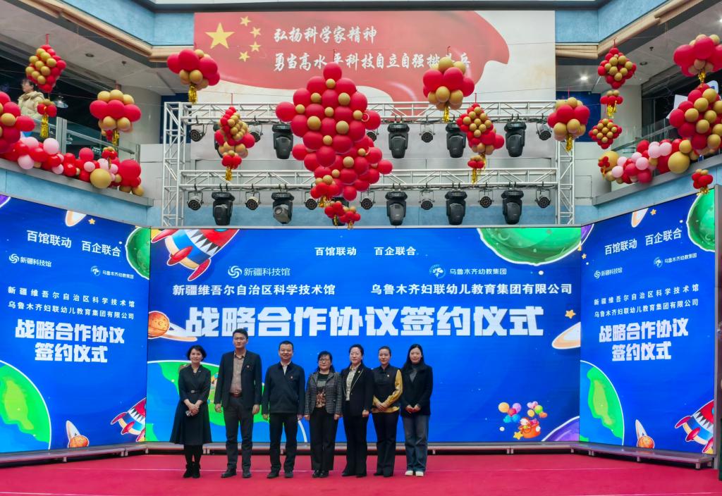 為在教育“雙減”中做好科學教育加法,把現(xiàn)代科技館體系高質(zhì)量發(fā)展與深入推進科普教育有機結合、統(tǒng)籌謀劃,更好地服務科學教育事業(yè),2月11日,新疆科技館與烏魯木齊婦聯(lián)幼兒教育集團有限公司舉行戰(zhàn)略合作框架協(xié)議簽約儀式。
