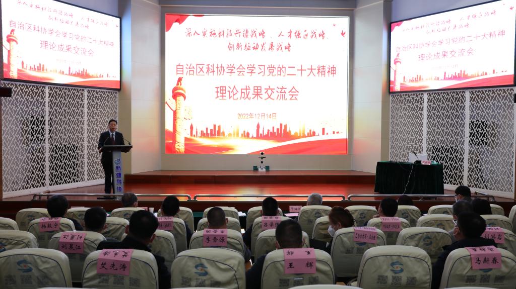 12月14日上午,“自治區(qū)學會學習黨的二十大精神理論成果交流會”在新疆科協(xié)會堂舉行。中國工程院院士、自治區(qū)科協(xié)主席鄧銘江作主旨報告,自治區(qū)科協(xié)黨組書記、副主席王光強出席會議并作總結講話,自治區(qū)科協(xié)黨組成員、副主席張煜主持會議。自治區(qū)科協(xié)兼職副主席木胡牙提·烏拉斯?jié)h、鄭文新、呂學強、崔彩霞及部分第九屆委員會常務委員現(xiàn)場參會。