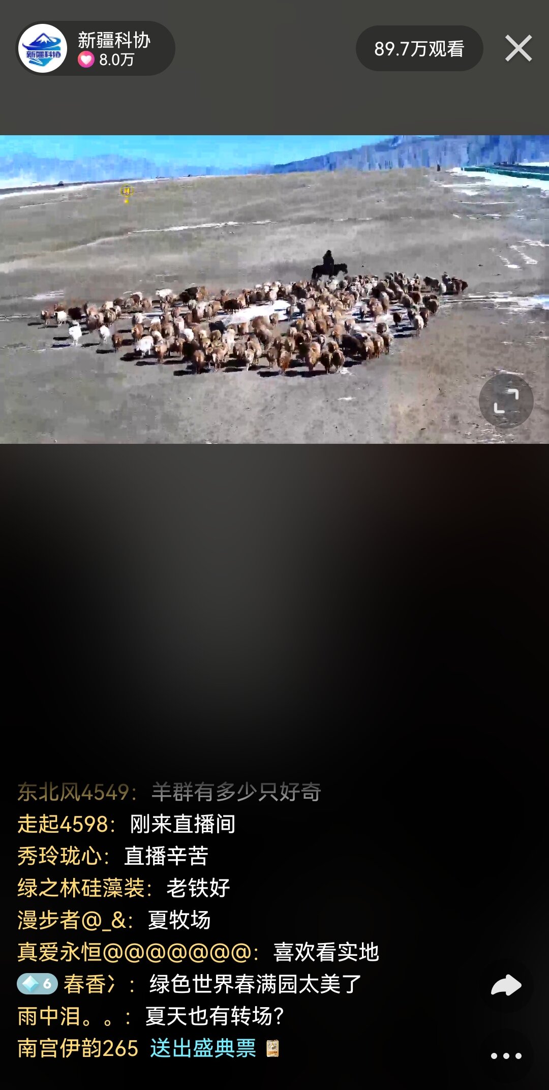 “屏幕前的觀眾大家好,這里是位于新疆伊犁州霍城縣2024年春季牲畜轉場果子溝老路口補給點指揮部的現(xiàn)場直播間,我是前方主播迪拉。今天,我將帶領各位觀眾領略新疆春季牛羊轉場,一同見證一場壯觀的自然遷徙,感受大自然與生命的奇妙連接......”3月16日,由新疆科協(xié)聯(lián)合快手獨家策劃的“神奇動物春游記——春季轉場”直播活動拉開帷幕。