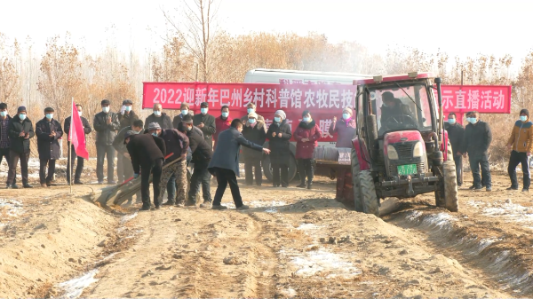 鄉村科普館舉辦農牧民培訓暨技能展示直播活動,現場開展葡萄覆膜機技術展示。
