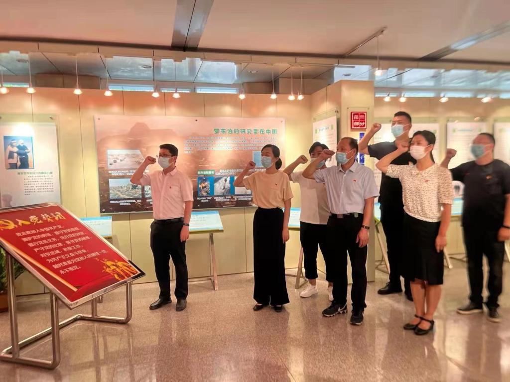 隨后,兩個支部的黨員干部來到新疆自然博物館參觀,并在中科院新疆分院黨員主題教育基地——彭加木革命烈士展廳內重溫入黨誓詞。