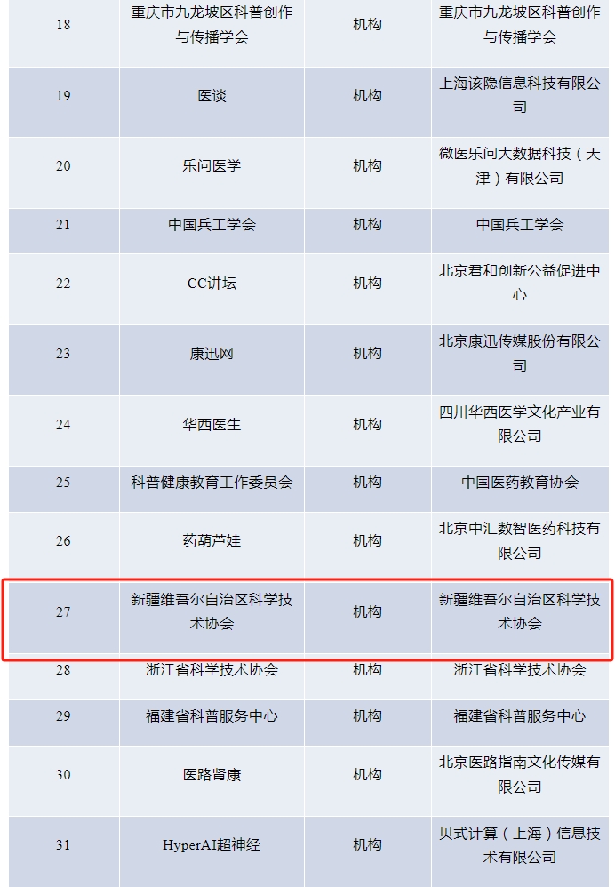 近日,中國科協發布科普中國2024年第一季度百佳科普號名單,新疆科協再次榮登榜單。
