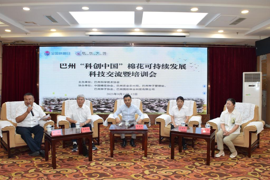9月12日,由巴州科學技術協會主辦,中國棉花協會、巴州農業農村局、巴州種子管理站、巴州種子協會、巴州國欣種業科技有限公司協辦的巴州“科創中國”棉花可持續發展科技交流暨培訓會議在庫爾勒市召開。河北省科協黨組書記、常務副主席王海龍,河北省保定市科協黨組書記、主席孫增軍,國際歐亞科學院院士、河北省高端人才,國務院政府特殊津貼專家馬峙英,巴州黨委常委楊雪蓮、巴州人民政府副州長王廣林、巴州科協黨組書記李冬玲等出席會議,會議由巴州人民政府副秘書長劉江生主持。