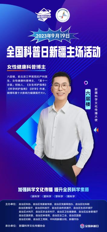 “大家好,我是女性科普工作者‘六層樓’,非常高興成為新疆科學文化傳播大使,祝賀新疆科學文化傳播協會成立!有機會我一定會去新疆領略和品嘗新疆的風景和美食,順便也把更多的女性健康科普知識帶過去。我們的共同的目標都是致力于新疆科學文化傳播,提升全民科學素質,在全社會營造講科學、學科學、愛科學、用科學的良好氛圍,希望大家都能加入到我們的行列當中,一起助力新疆科學文化傳播和發展!”