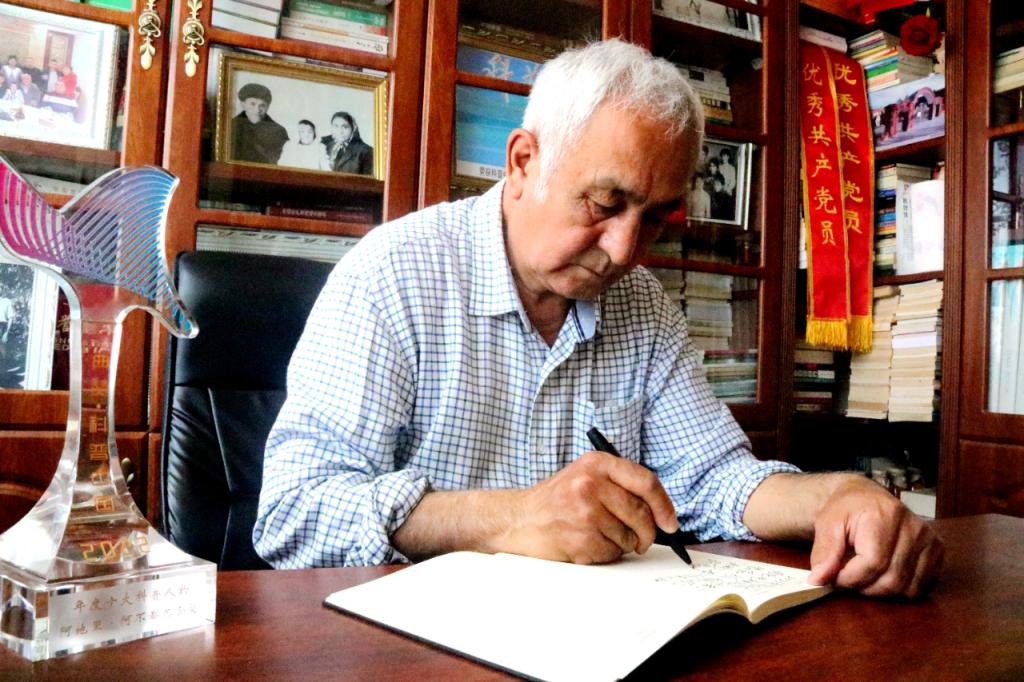 從事科普創作44年,每年10%的工資用于科普;先后在報刊雜志上發表近500篇童話、小說等科普文章;參與科普宣傳和紅色黨史學習教育500多場次,接待來訪群眾16000多人次……他就是阿地里·阿不都熱合曼。