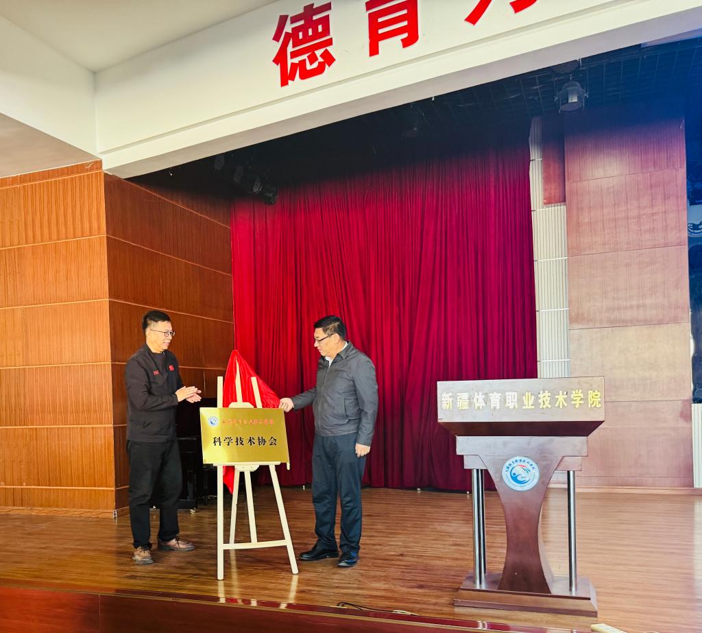 會上,李永晟和楊雁冰共同為“新疆體育職業(yè)技術(shù)學(xué)院科學(xué)技術(shù)協(xié)會”揭牌。