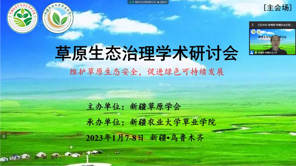 2023 年 1 月 7-8 日,由新疆草原學會主辦,新疆農業大學草業學院承辦的草原生態治理學術研討會在線上召開。自治區科協黨組成員、副主席張煜,新疆草原學會副理事長、新疆農業大學草業學院院長張博,自治區林草局處長閆凱出席論壇并講話。