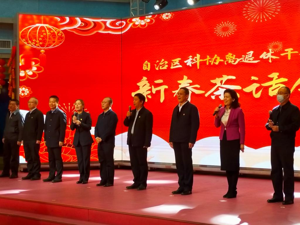 喜氣洋洋的新疆科技館里,自治區科協離退休干部新春茶話會上,自治區科協黨組書記王光強熱情洋溢的新春祝福、各支部美輪美奐的舞蹈、妙趣橫生的抽獎環節、激動人心的愛國歌曲、……揭開了自治區科協2022年元旦春節期間系列走訪慰問離退休人員活動的序幕。